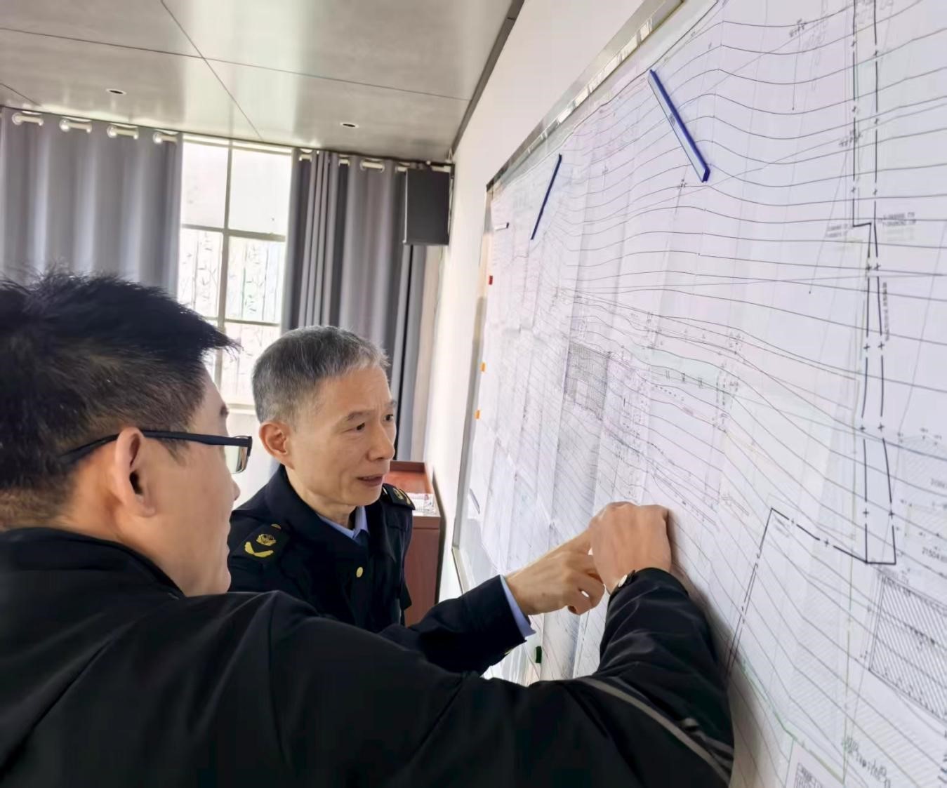 抵达该矿后,核查组在调度室核查人员撤离情况,查阅超限地点相关图纸,随即下井开展勘查。